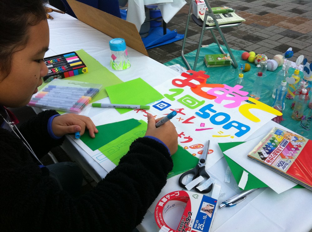 この日のイベントには、地元の小学生や中学生がボランティアスタッフとしてたくさん参加していたことも印象的でした。お客さんの呼び込みや売り子係として、会場のいたるところで大活躍。「まとあて」ゲーム用のかわいい「まと」を、ペットボトルに飾りを付けて事前に作ってくれていたのも、実は小学生のボランティアたち。地域の中でボランティア活動を体験させようと、学校あげて積極的に取り組んでおられるそうですが、元気いっぱいに動き回る彼らを見ていると、子ども=未来の象徴だとつくづく感じます。