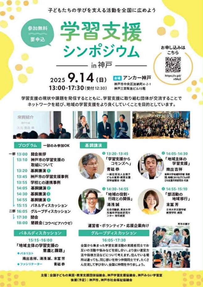 2025.9.14学習支援シンポジウム 13:00-17:30 アンカー神戸にて 参加費無料(要申し込み)