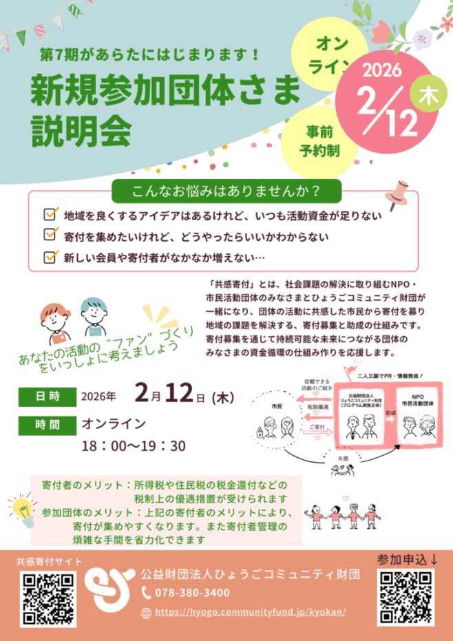 2026/2/12(木)共感寄付参加団体の募集説明会を行います。