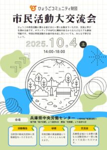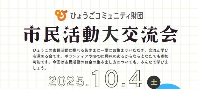 ひょうごの市民活動に携わる皆さまに一堂にお集まりいただき、交流と学びを深める会です。ボランティアやNPOに興味のあるからならどなたでも参加可能です。今回は市民活動のお金の生み出し方についても、みんなで学びましょう。